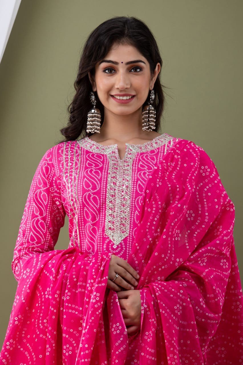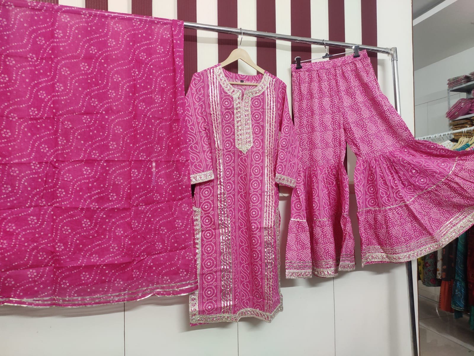 Pink Cotton Kurti, Sharara and Dupatta set
