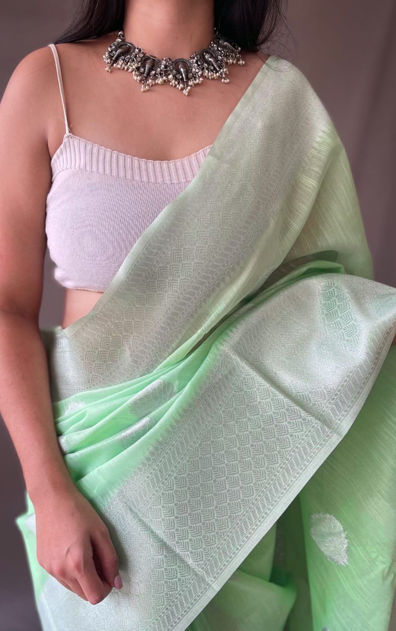 Linen Silk Sarees with Silver Zari Weaving Motifs all over.