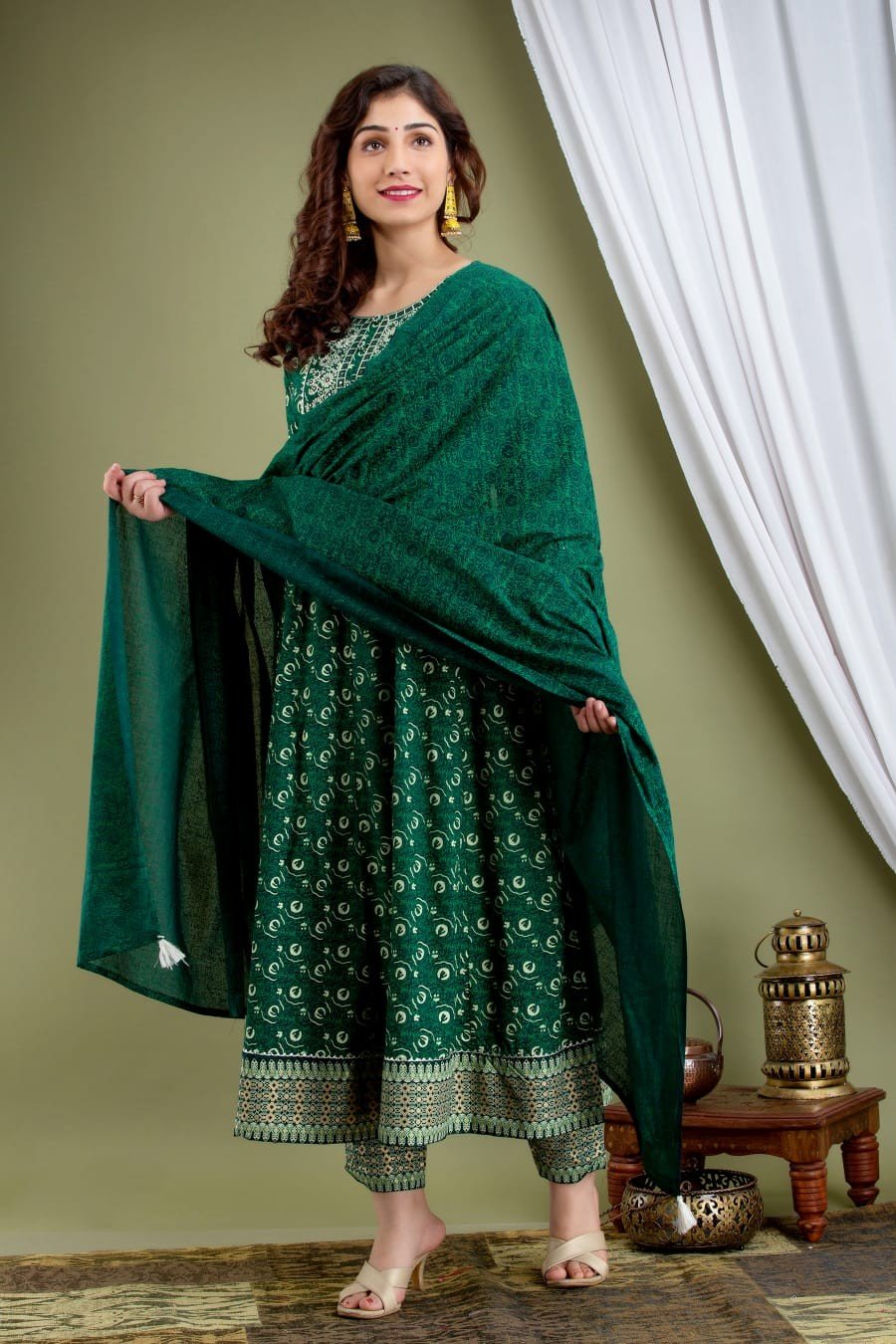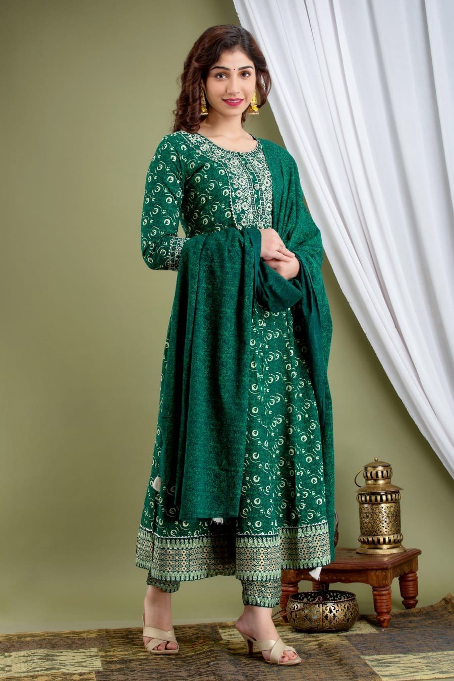Long Anarkali Stitched with Matching Dupatta