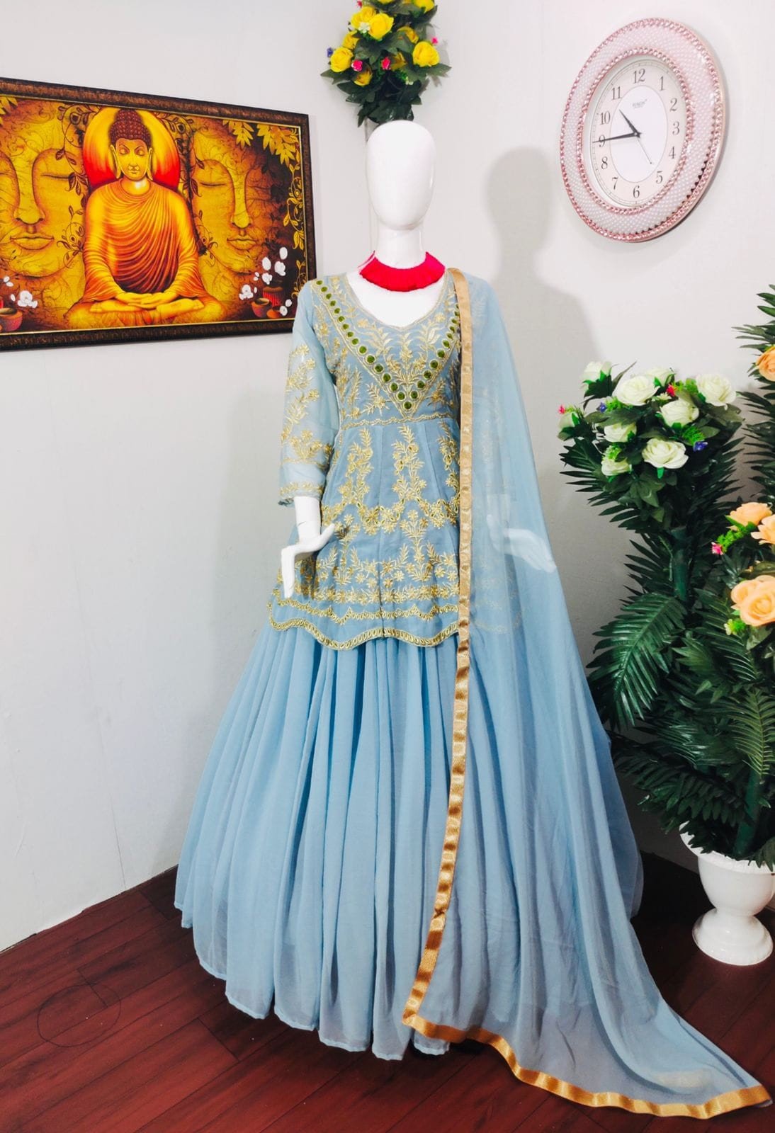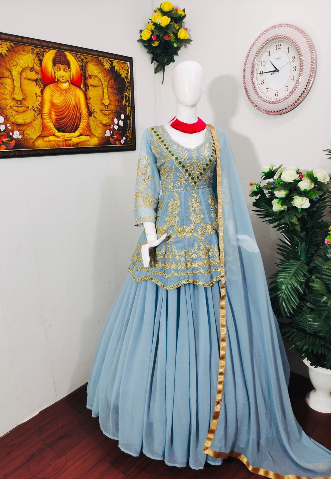 KEDIYA FABRIC : FAUX Georgette WITH EMBROIDERY WORK WITH SLEEVES WITH COTTON WORK