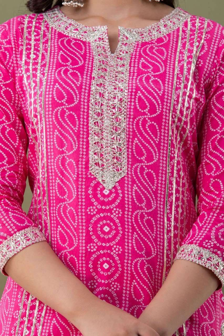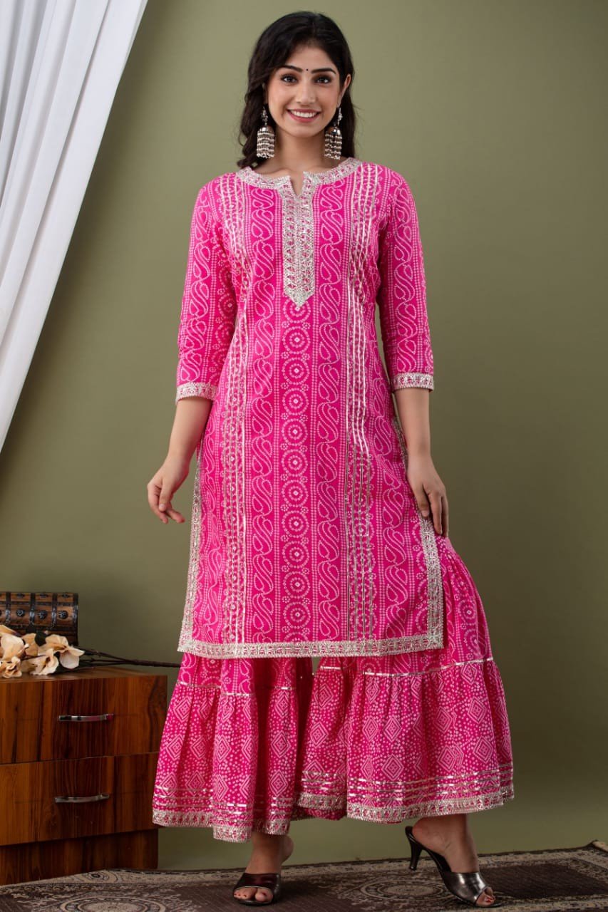 Pink Cotton Kurti, Sharara and Dupatta set