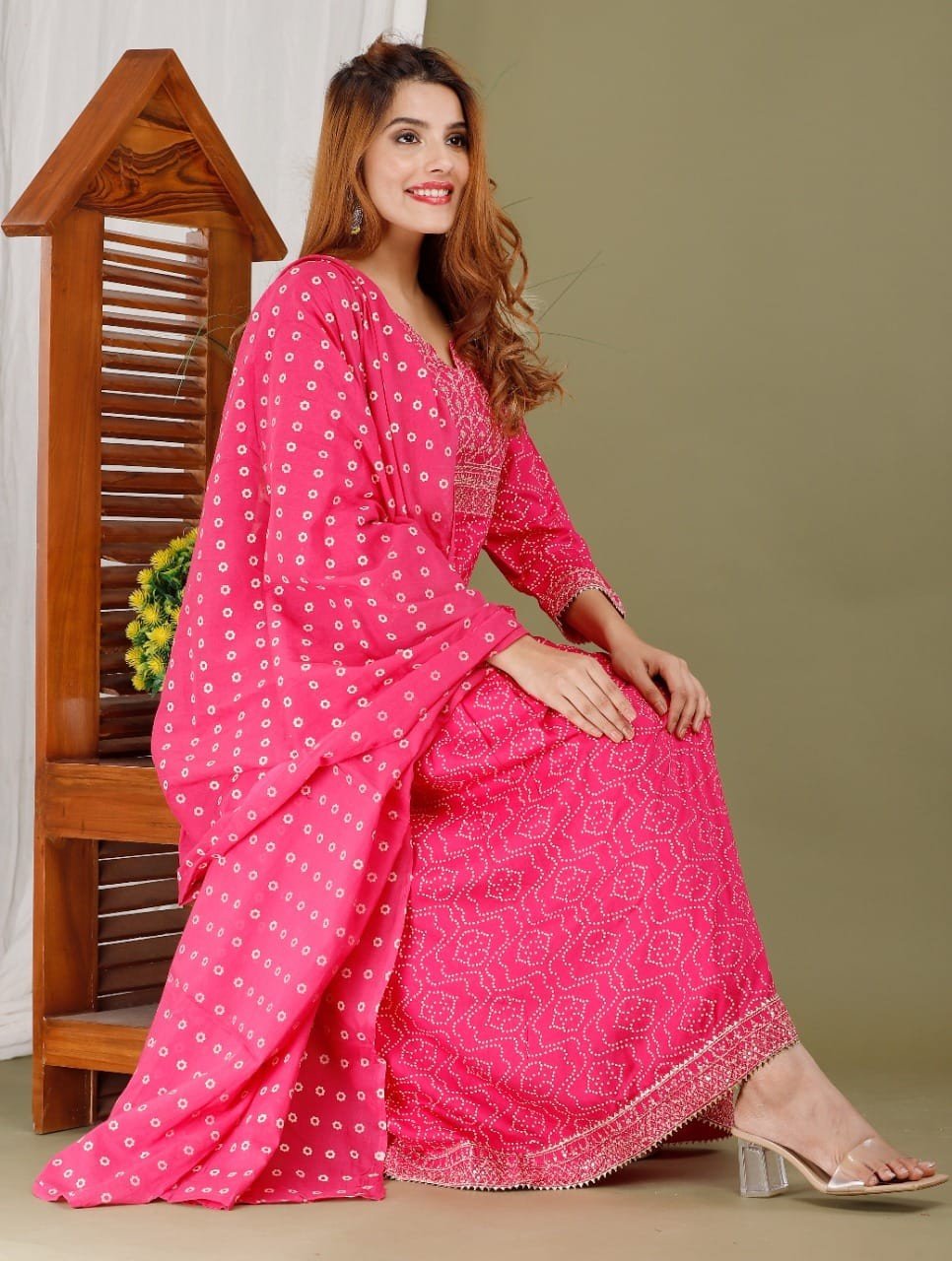 Fabric: Cotton (Kurti length: 49", Pant length: 37", Dupatta: Chiffon 2 mtrs)